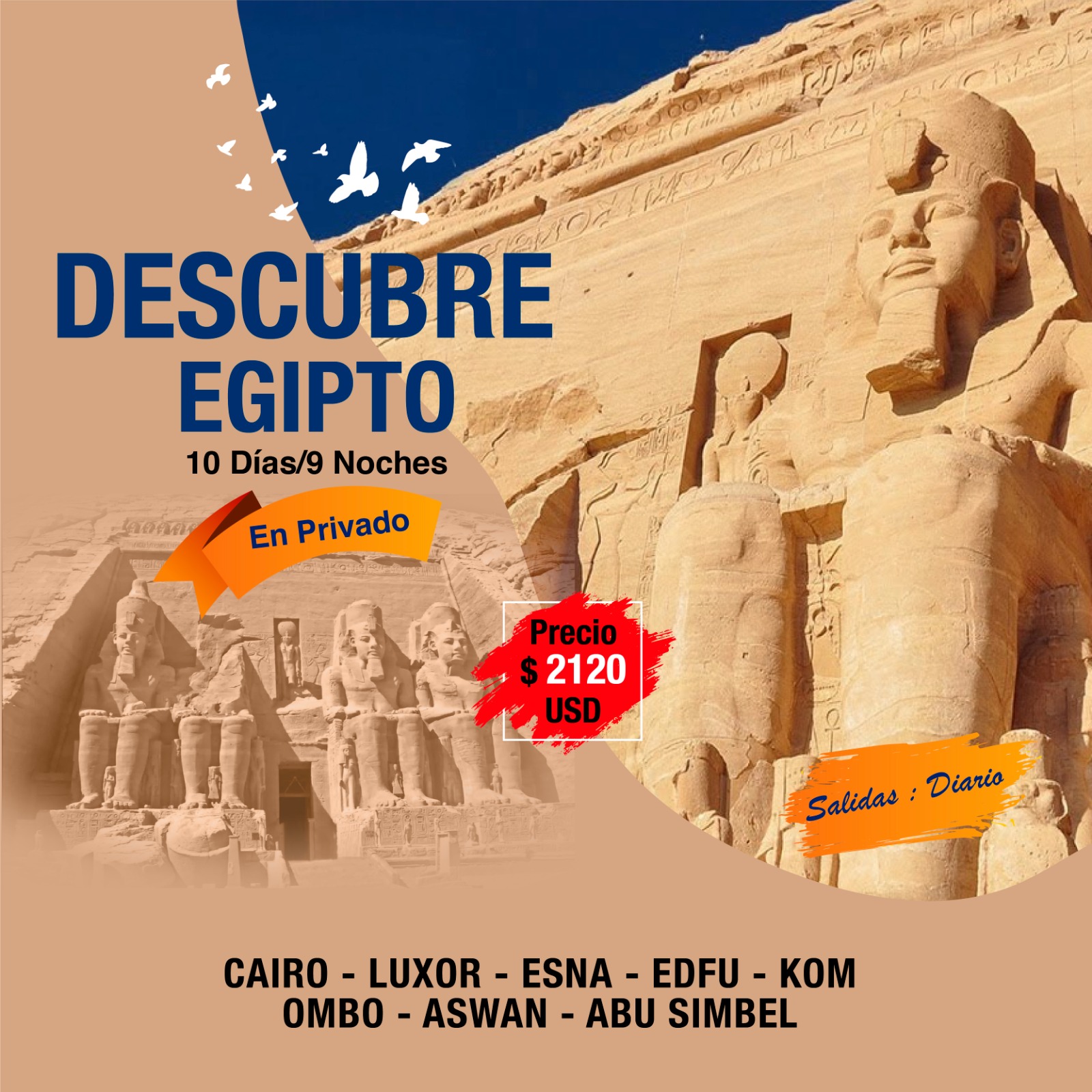 | VUELOS DOMESTICOS CAIRO – LUXOR / ASWAN – CAIRO | $320 | ||||